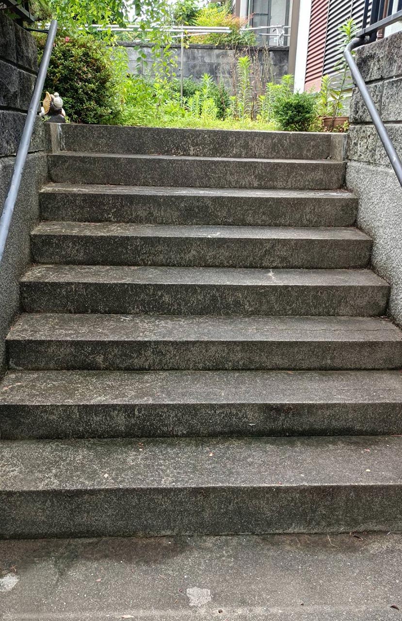 階段に散らばっている枯葉やゴミなども掃除して撤去。